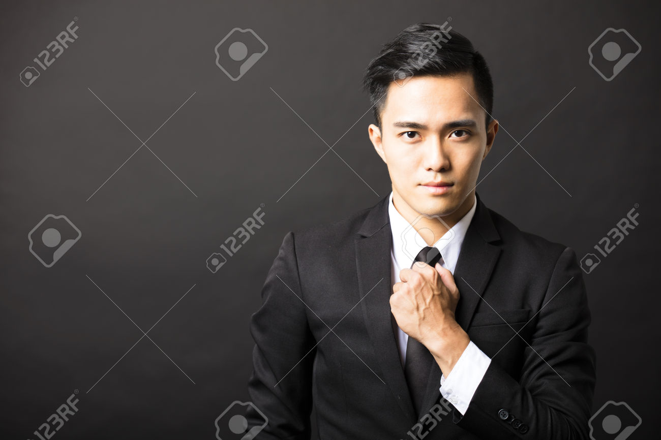 young asian businessman on black background
